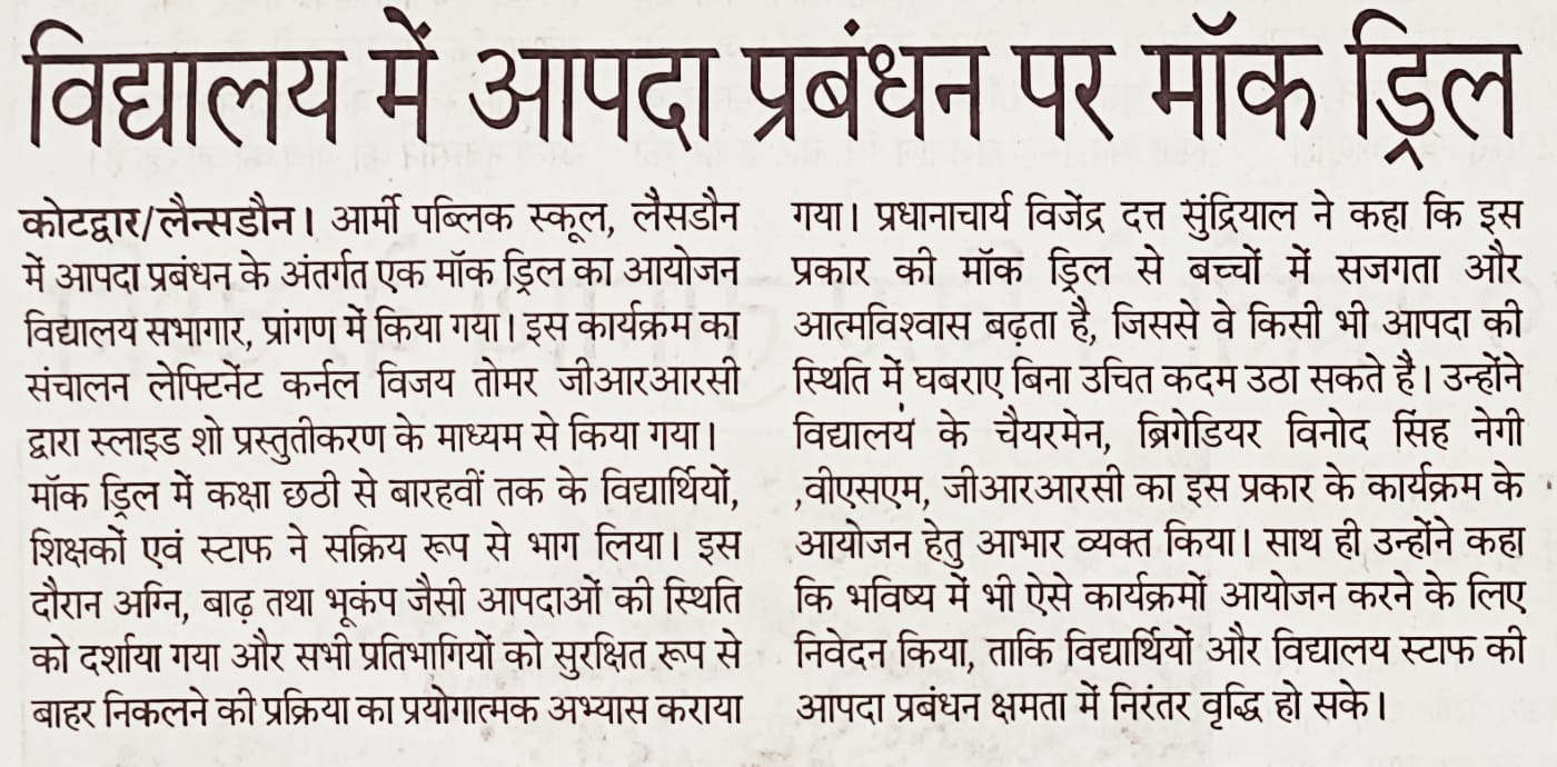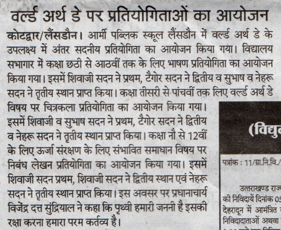 ADMISSIO0N OPEN FOR SESSION (2026-27) click here to download Interview Schedule of LSB 2026 be held at APS NO 1 Roorkee click here to check Selection of teaching staff for session 2026-27 Click here for download GUIDELINES FOR LSB 2026-27 click here to download Health Examination Camp at School View Event. Disaster Management Lecture and Fire Fighting Demonstration Conducted at School View Event. Street Play on Water Depletion Highlights Urgency of Conservation at School Assembly View Event. Inter-School Hindi Debate Competition at APS Lansdowne Sponsored by Lansdowne Old Students Association (LOSA) View Event. Mother’s Day Celebration at School View Event. Informative Session on Child Safety, Cyber Security, POCSO, and Drug Abuse Prevention at APS Lansdowne View Event. Counselling Sessions Conducted at School on 25 Apr View Event. Celebration of World Earth Day on 22 Apr View Event. World Health Day was observed on 7 April 2025 View Event. Martial Arts and Self Defense Camp Ceremony View Event. Most improved APS View Event. TENDER NOTICE click here to check