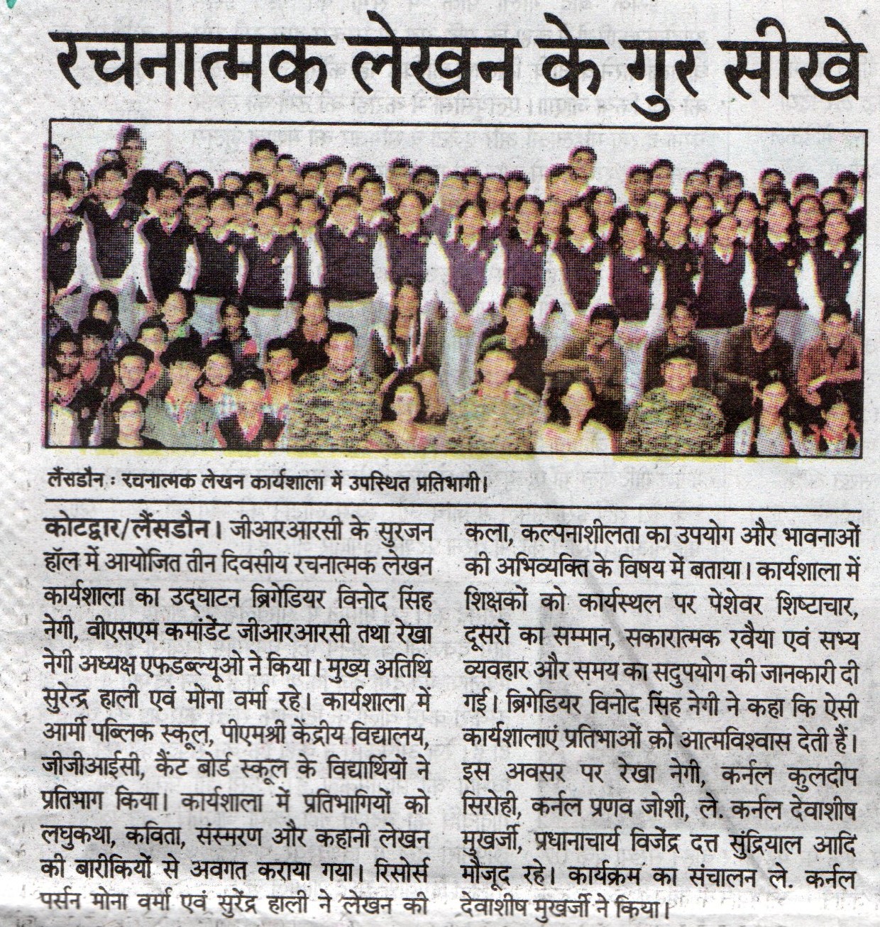 4) We are grateful to the hon'ble Chairman sir Brig Vinod Singh Negi, VSM Comdt GRRC for providing us an opportunity to be the part of such an enriching and informative workshop.