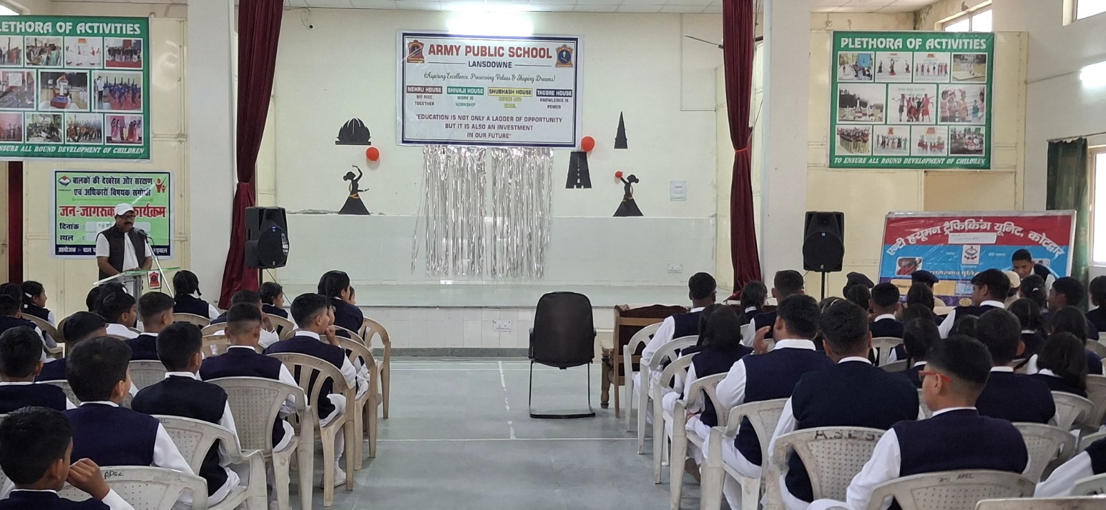 An impactful awareness session was conducted on 07 May 2025 at Army Public School (APS) Lansdowne, focusing on critical aspects of child protection and well-being. The event was organized by the Anti-Human Trafficking Unit, District Pauri, in collaboration with the Child Welfare Committee (CWC), Government of Uttarakhand.