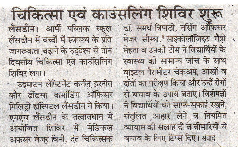 In view of this, a health examination camp is being conducted at the school under the aegis of Military Hospital (MH), Lansdowne.