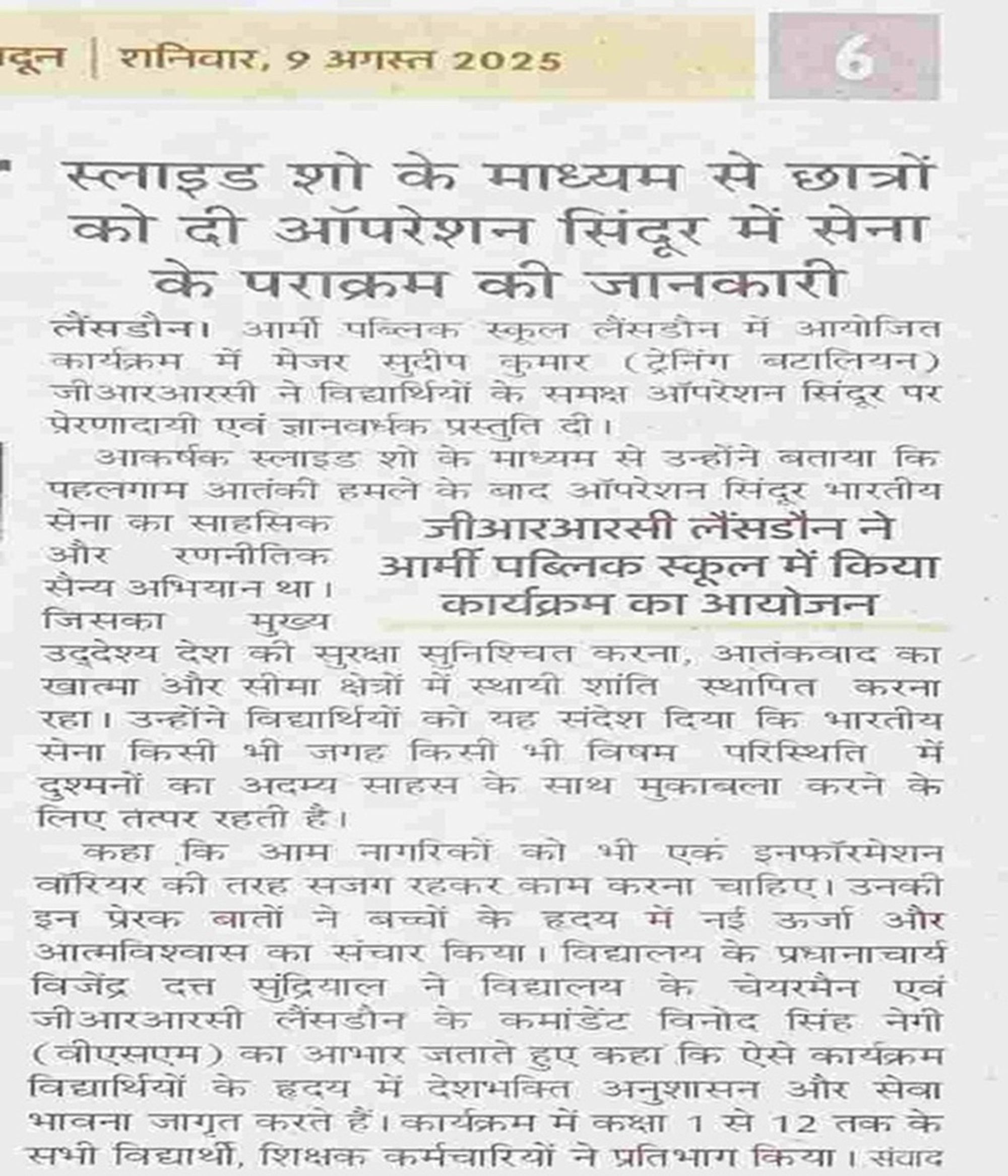 2. She passed out from APS Lansdowne in the yr 2019. She visited the school today and ignited the young minds in order to join the Armed forces.