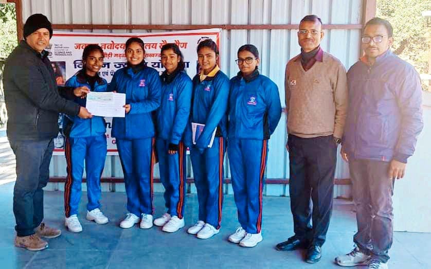 3. JNV Kahirasain, Pauri Garhwal is the representatives of the said program in the distt. Mr JP Balodi, Vice Principal and Mr Jitendra Dhasmana presented a cheque of ₹45,000/- (Each girl has received ₹9,000/). Second installment of the scholarship of ₹15,000/ will be disbursed later.