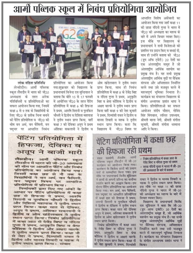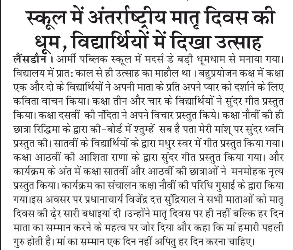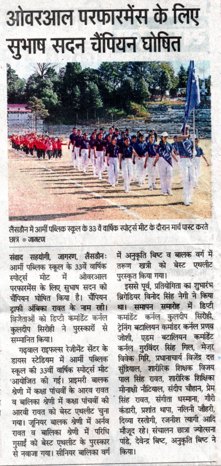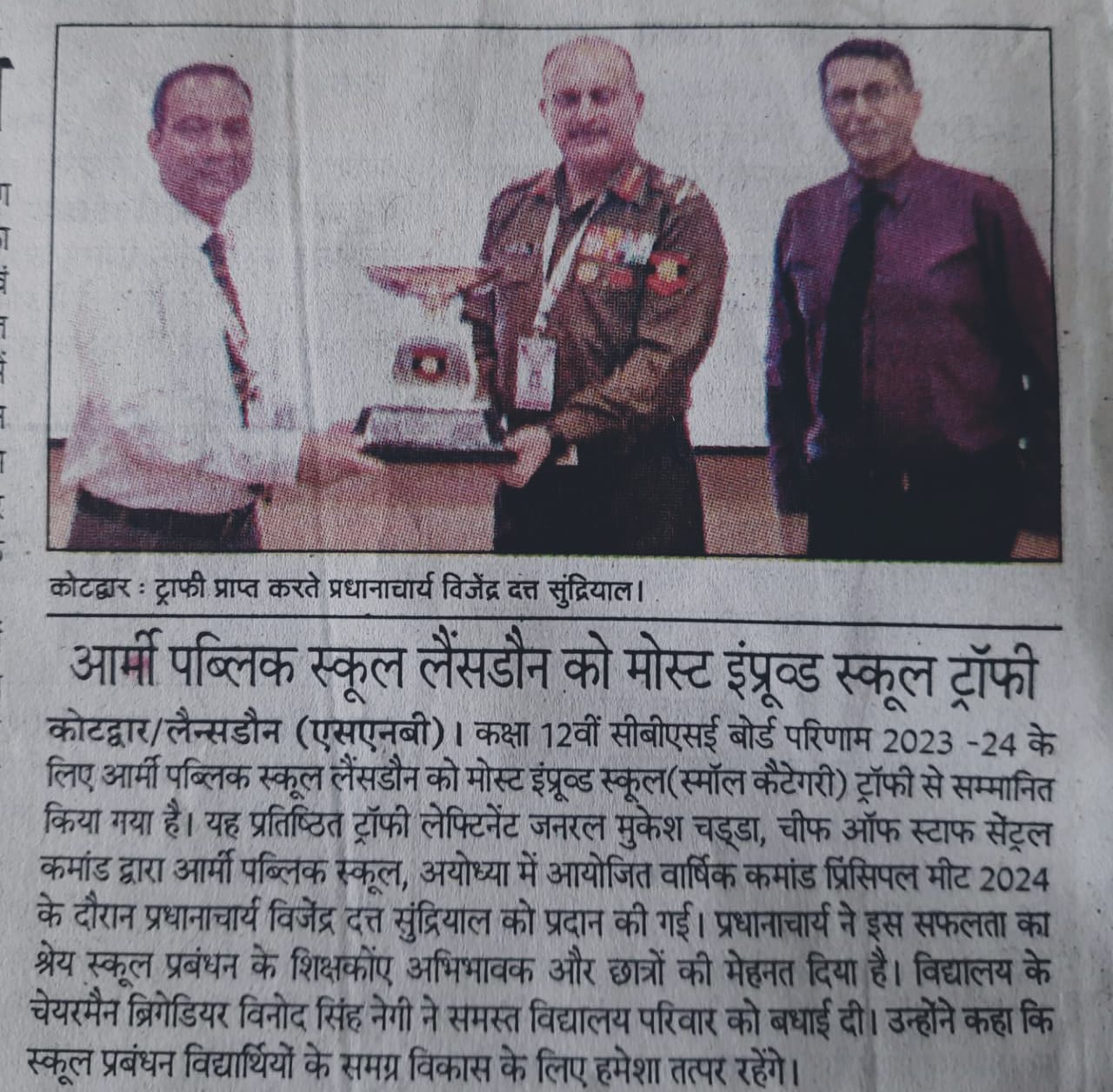 1. 26th Annual Day function of APS Lansdowne was held on 18th and 19th Dec 2023 in the Surjan Auditorium, GRRC.