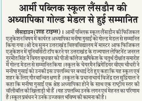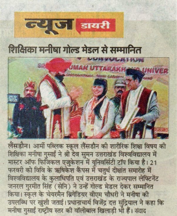2. The medal and certificate was awarded to the individual by Hon'ble Governer of Uttrakhand Lt Gen Gurmeet Singh during the convocation ceremony held at PG college Rishikesh