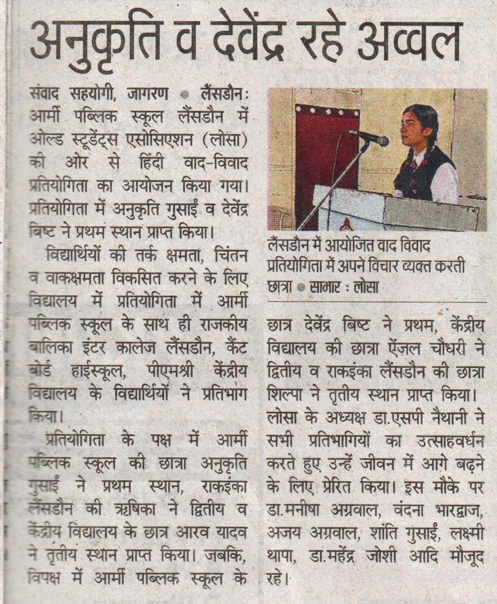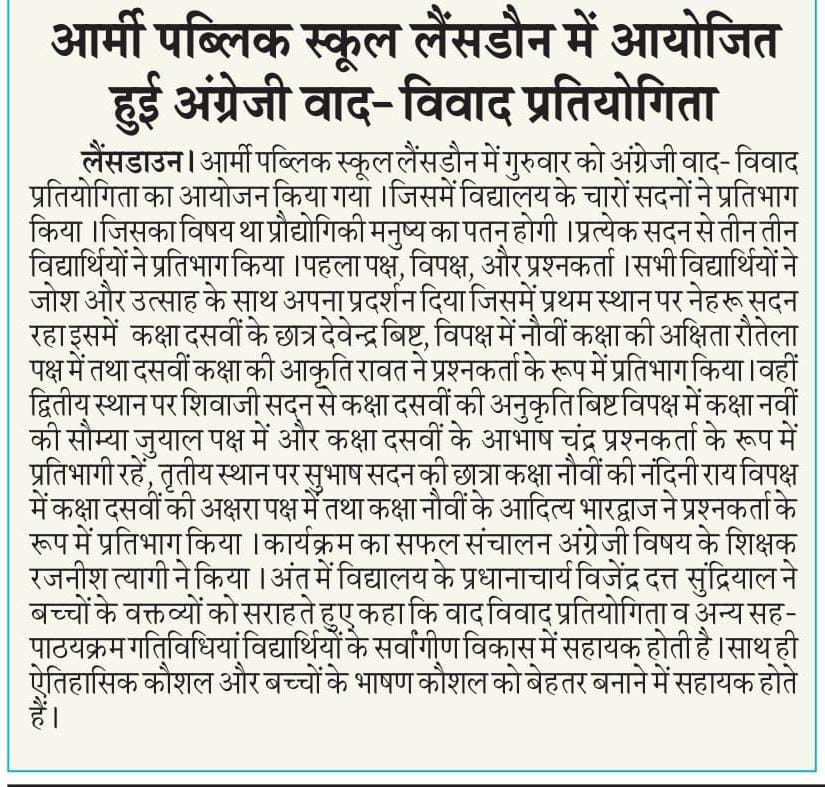 Inter-School Hindi Debate Competition at APS Lansdowne