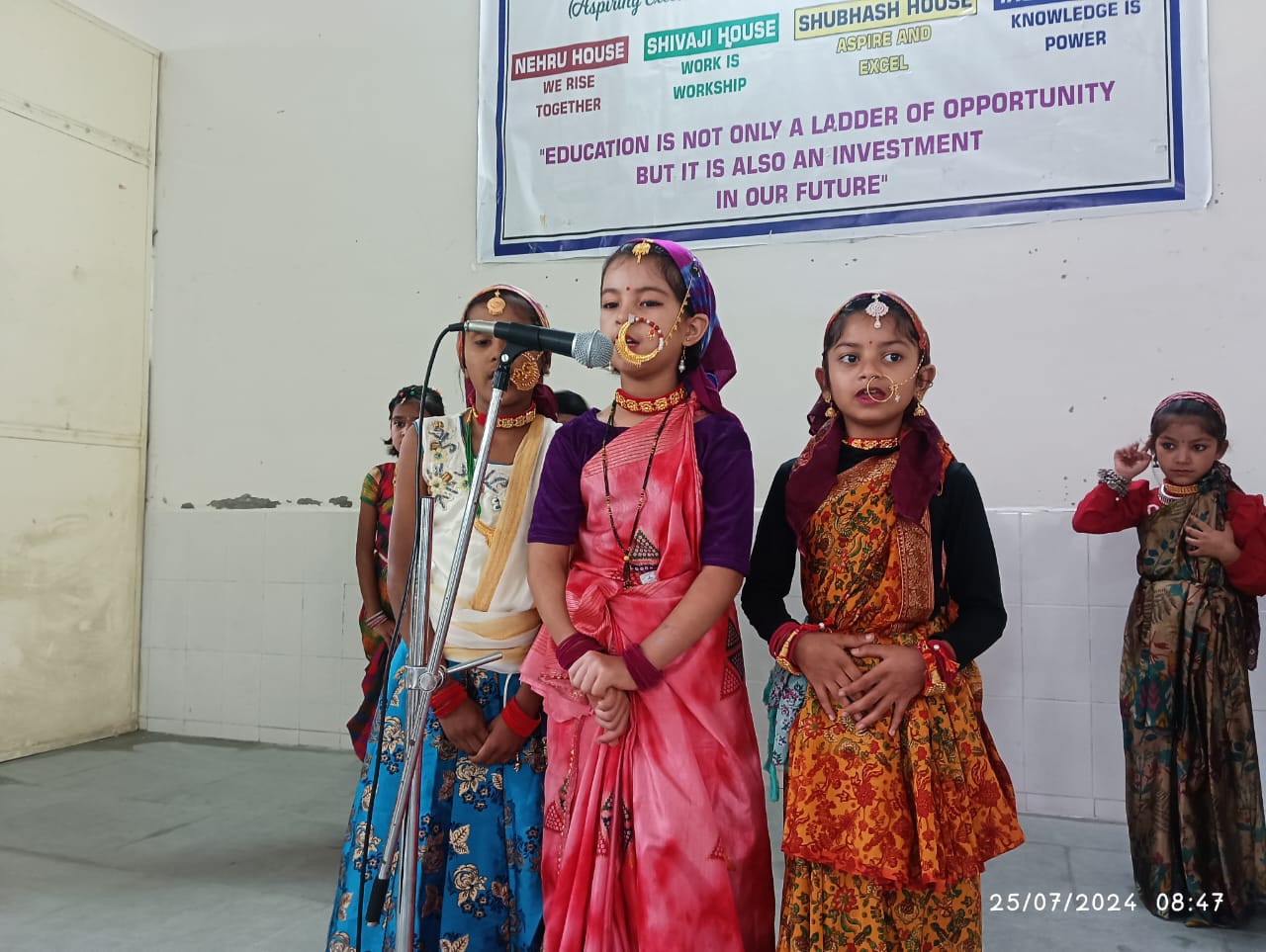 Students from the primary and junior grades added charm to the event with delightful group songs in Hindi and English. The audience was also treated to soulful solo performances by Nandini, Ridhima, and Asheeta, which were met with enthusiastic applause.